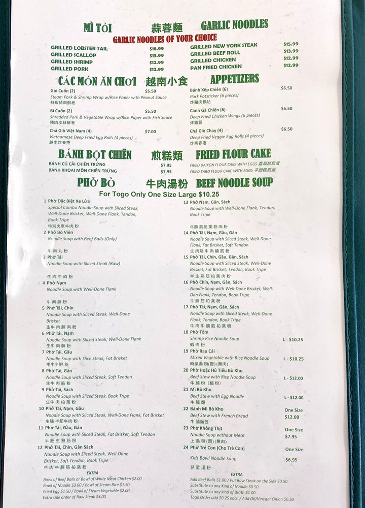 Introducing the menu at New Pho Saigon 2 Noodle & Grill Restaurant, a Vietnamese-Chinese eatery in Milpitas, CA. With a wide range of options like beef stew with rice noodles and grilled pork over rice, the flavorful dishes offer generous portions that leave customers satisfied. The broth in the pho is highlighted for its delicious taste, accompanied by fresh ingredients like lemon, Thai basil, jalapeños, and bean sprouts. Customers praise the egg rolls for their crunchiness and the spring rolls for their savory peanut sauce. The restaurant's clean environment, fast service, and spacious layout make it a convenient and enjoyable dining experience. From happy hour specials to vegan options, New Pho Saigon 2 caters to various dietary preferences with flavorful and authentic Vietnamese and Chinese cuisine.